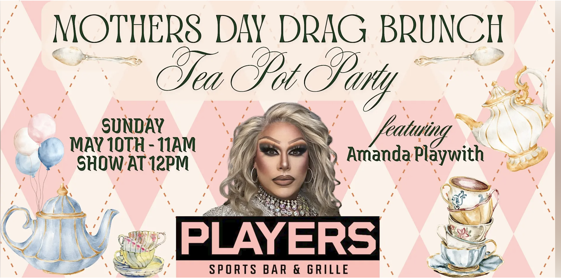 Players Sports Bar & Grille's annual Mothers Day Drag Brunch and Tea Pot Party! Come enjoy our signature Brunch, special Tea Pot Cocktails and Drag performances by Amanda Playworth, Abby Cummings, Lilly Rose Valore & Karisma Geneva Jackson-Tae!